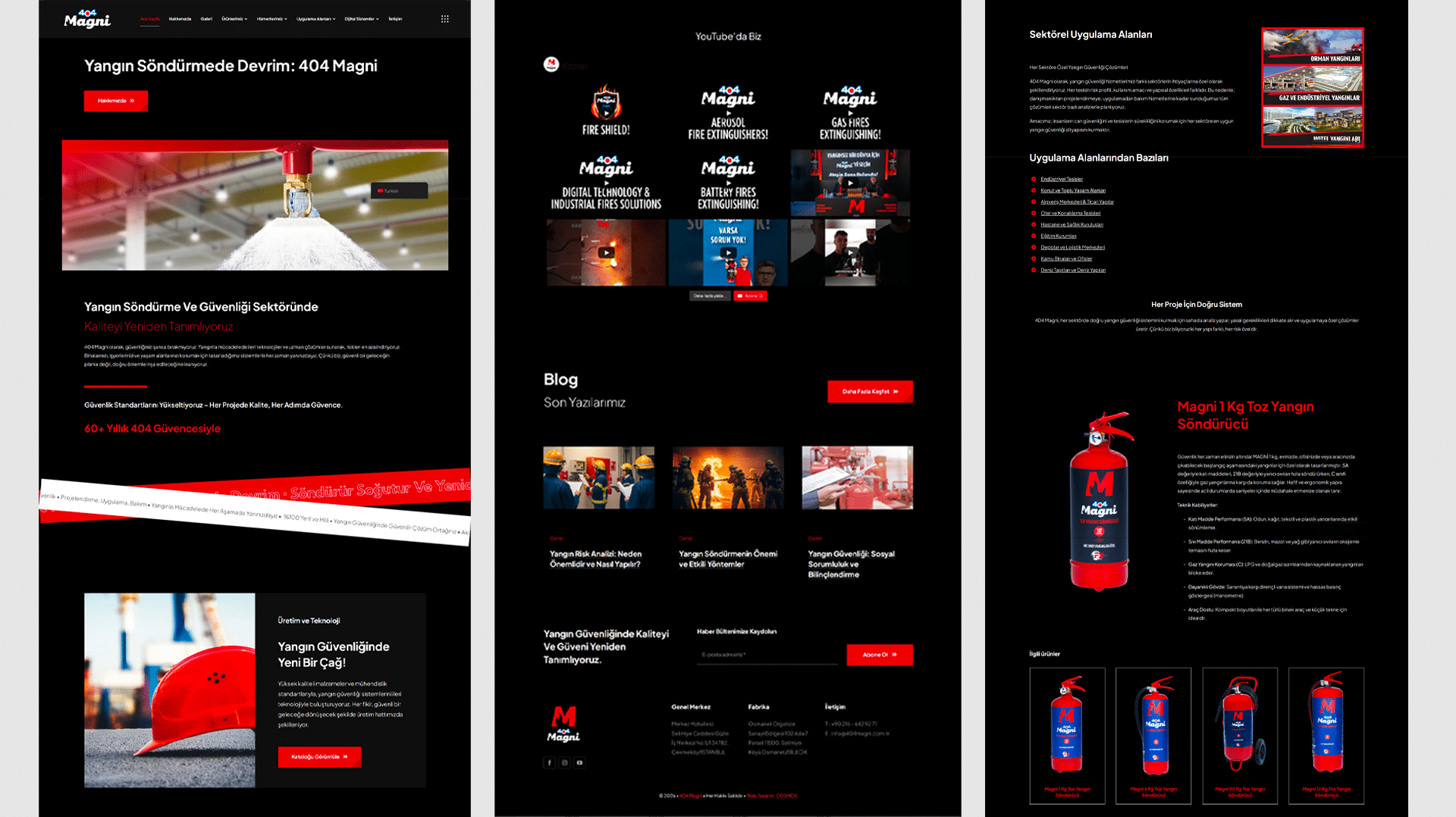 We conducted a modern web design work that reflects the technical strength, reliability and corporate posture of the brand for 404 Magni, operating in the field of fire extinguishing systems. By keeping user experience in the forefront, a simple, professional and sector-oriented interface that visitors can quickly access products and services.