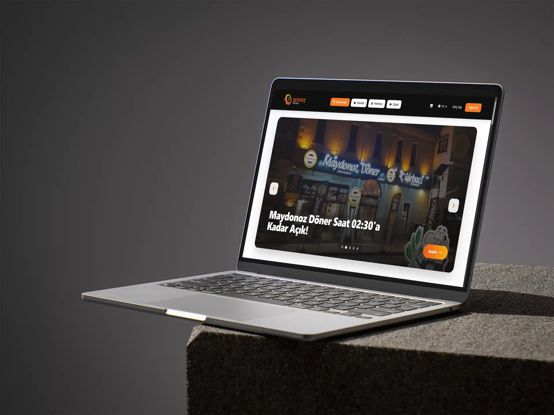 SeferX Yemek için, markanın hızlı servis ve kullanıcı odaklı yapısını yansıtan modern ve işlevsel bir dijital altyapı oluşturduk. İlk adımda marka kimliğini tasarlayarak, logodan renk paletine kadar tüm görsel dili markanın dinamizmini yansıtacak şekilde şekillendirdik.